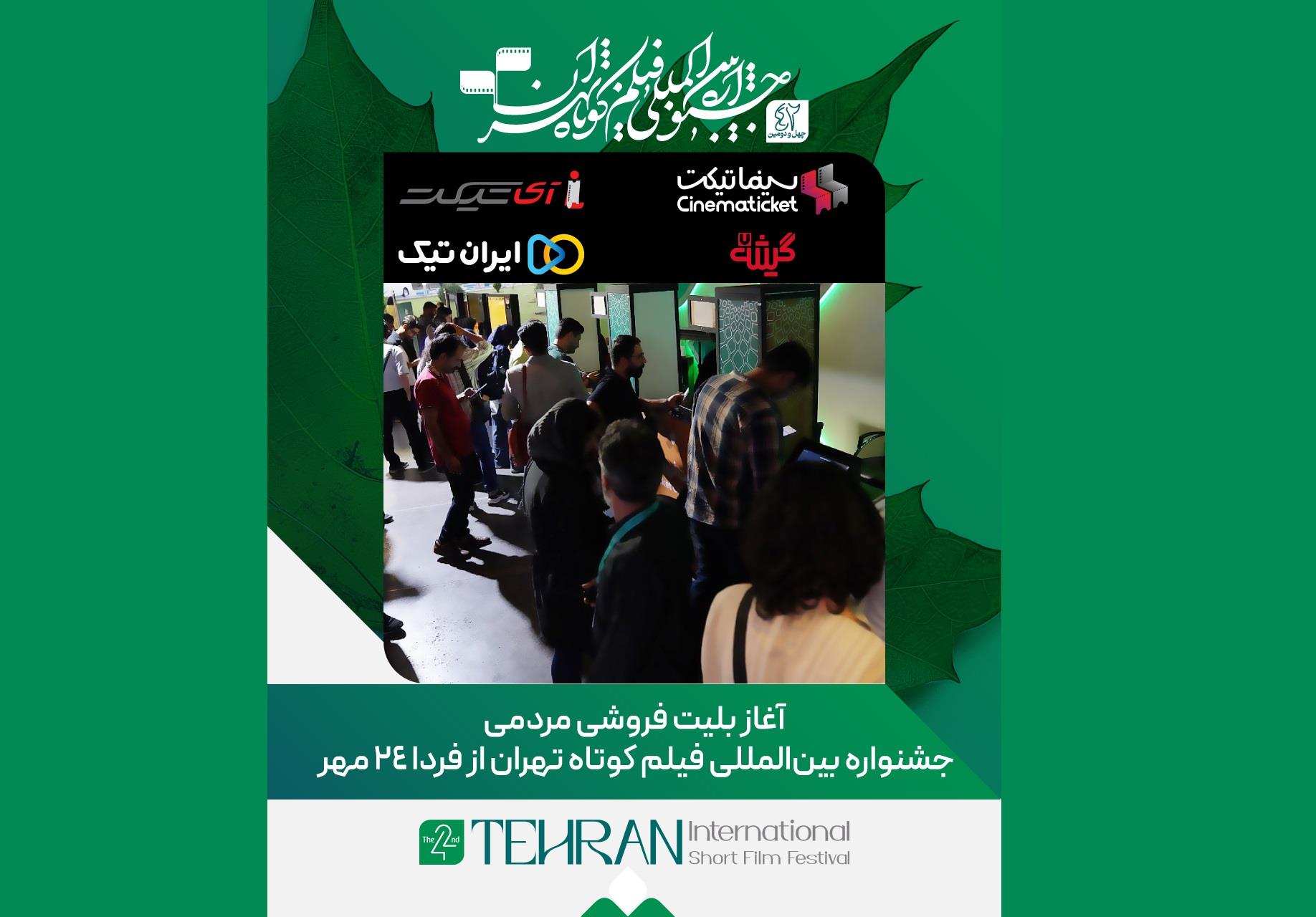 فروش عمومی بلیتهای چهلودومین جشنواره بینالمللی فیلم کوتاه تهران از صبح فردا، پنجشنبه ۲۴ مهر ۱۴۰۴ ساعت ۱۰ صبح در سامانههای معتبر فروش بلیت آغاز میشود.